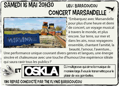 16mai20h3022h30Type d'évènementÉvénementsConcert MARSANDELLE20h30 - 22h30 Salle Fernand Magnan